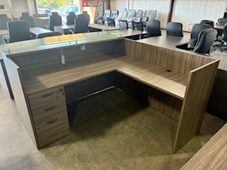 OSP URBAN WALNUT SINGLE PEDESTAL RECEPTION DESK WITH GLASS COUNTER